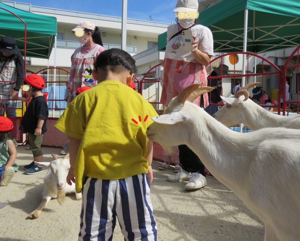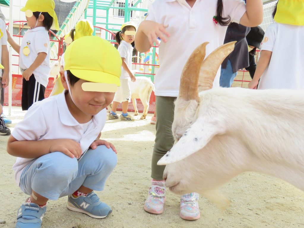 と言っているみたいに、もも組さんの服をツンツンしていたヤギさん(笑)