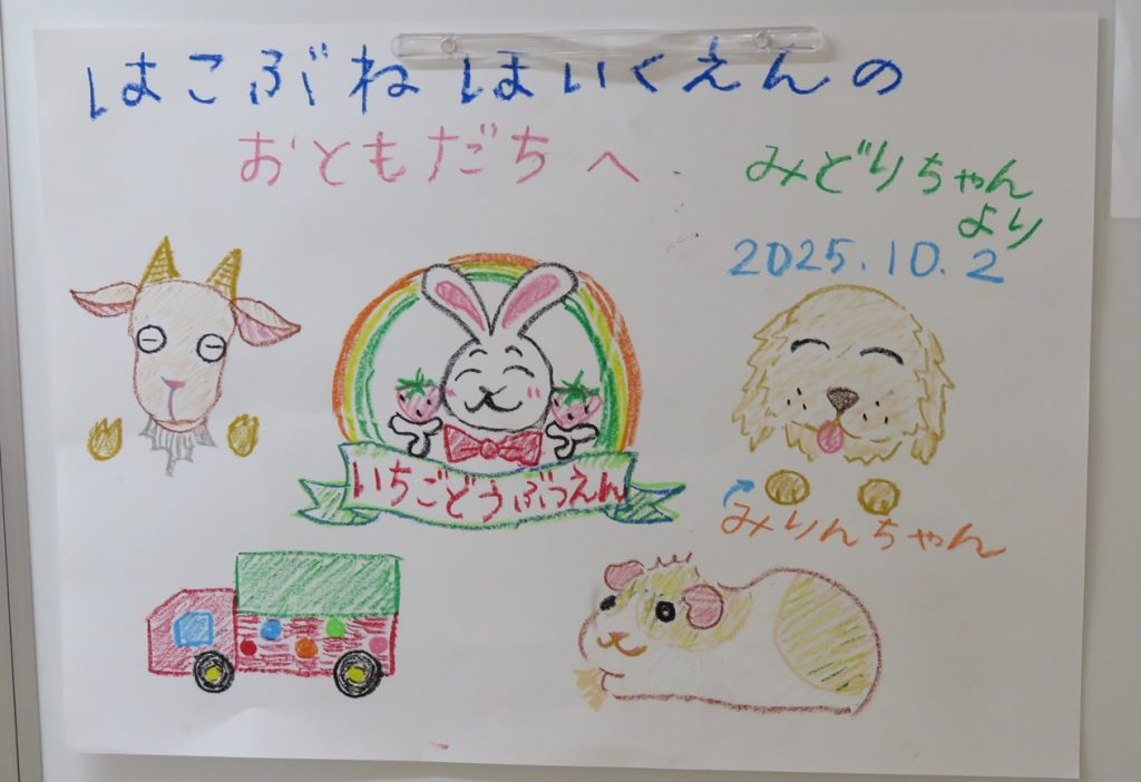 いちご動物園の費用は、毎年保護者会が負担してくださっていて、子ども達の楽しみな行事の1つです。今年もありがとうございます。