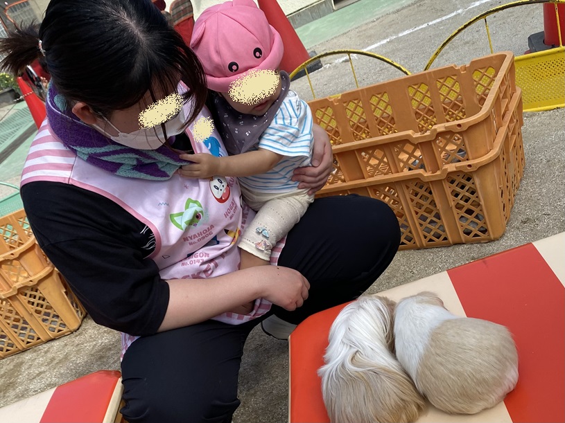「かわいいねー」と女の子達とお話をしていたら、男の子達が「先生、この子もかわいいよー」と寄ってきました。