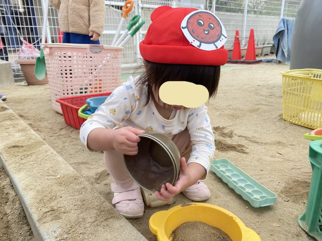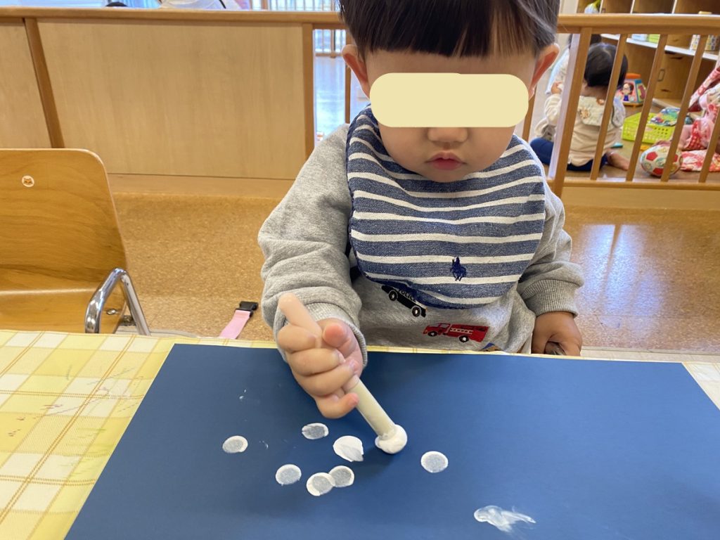 登園時泣いていた0歳児のつぼみ組さんも、ニコニコ過ごせるようになって、じっくりお遊びできるようになりました。