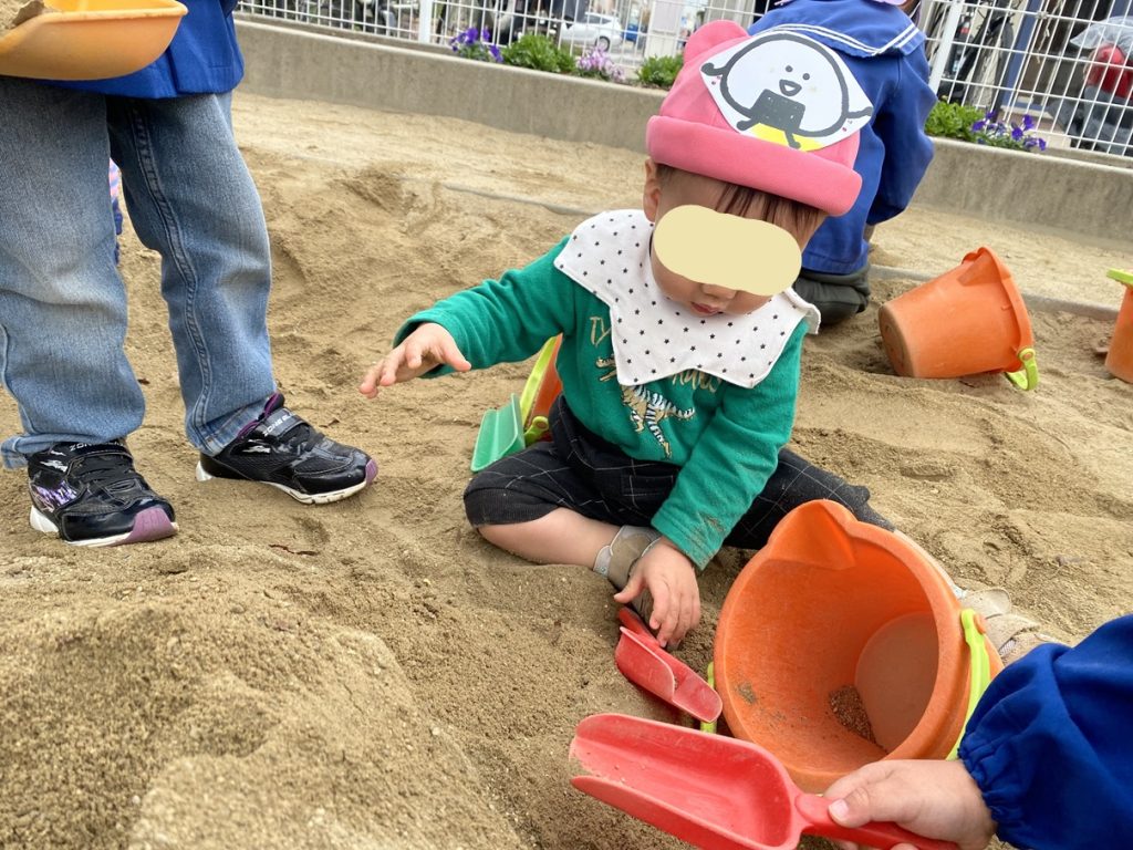 劇あそびの後、お砂場遊びを楽しむハンバーグさんとおにぎりさん(笑)