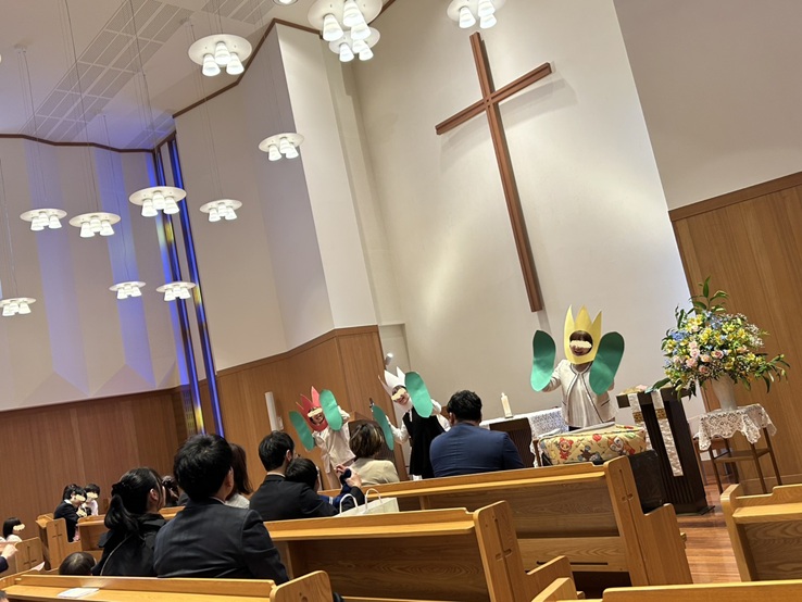 そんな花いっぱいの4月4日。箱舟保育園の入園礼拝が、隣接されている『めぐみ教会』で行われました。